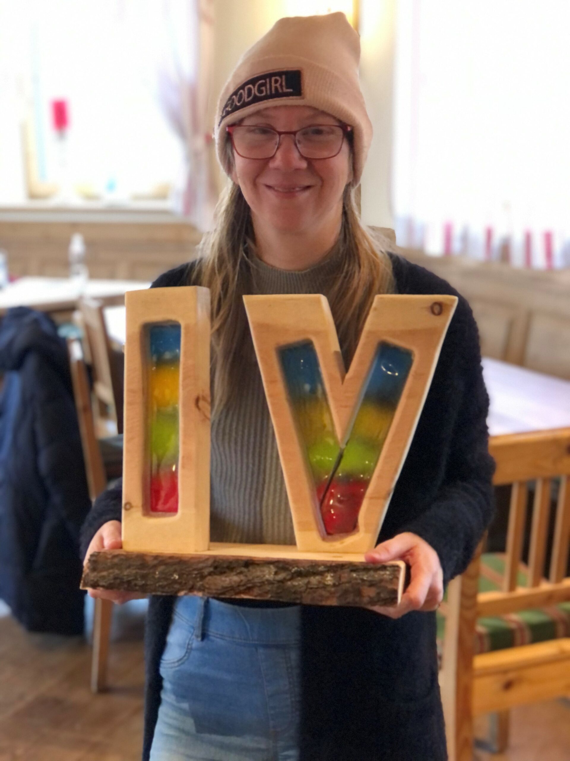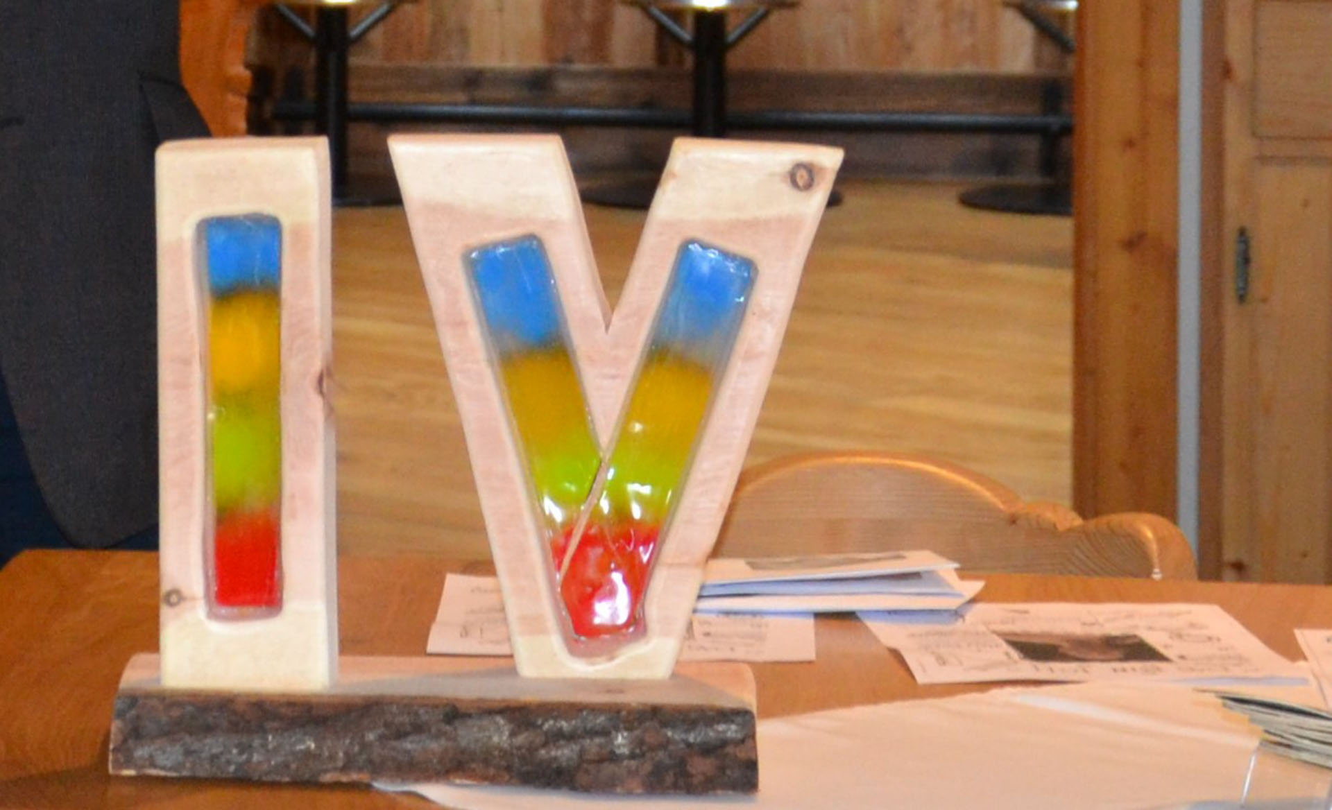 | alt: | "I V" aus Holz auf einem Tisch mit Unterlagen als Symbolbild für Interessenvertretung |