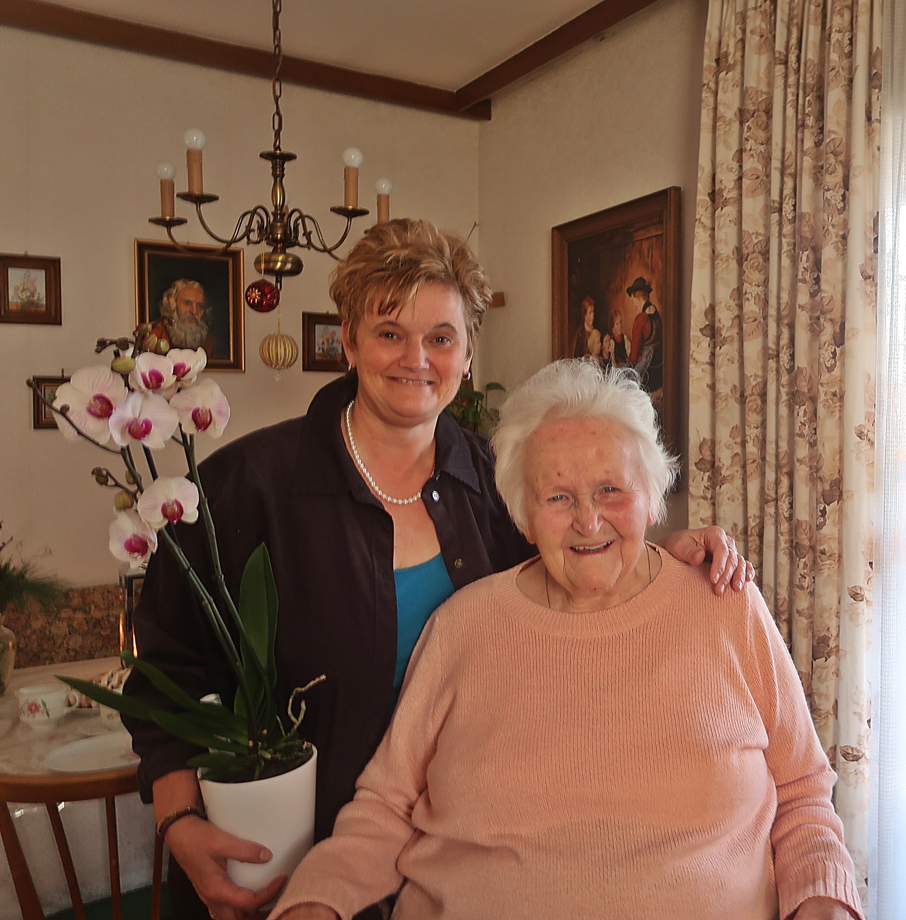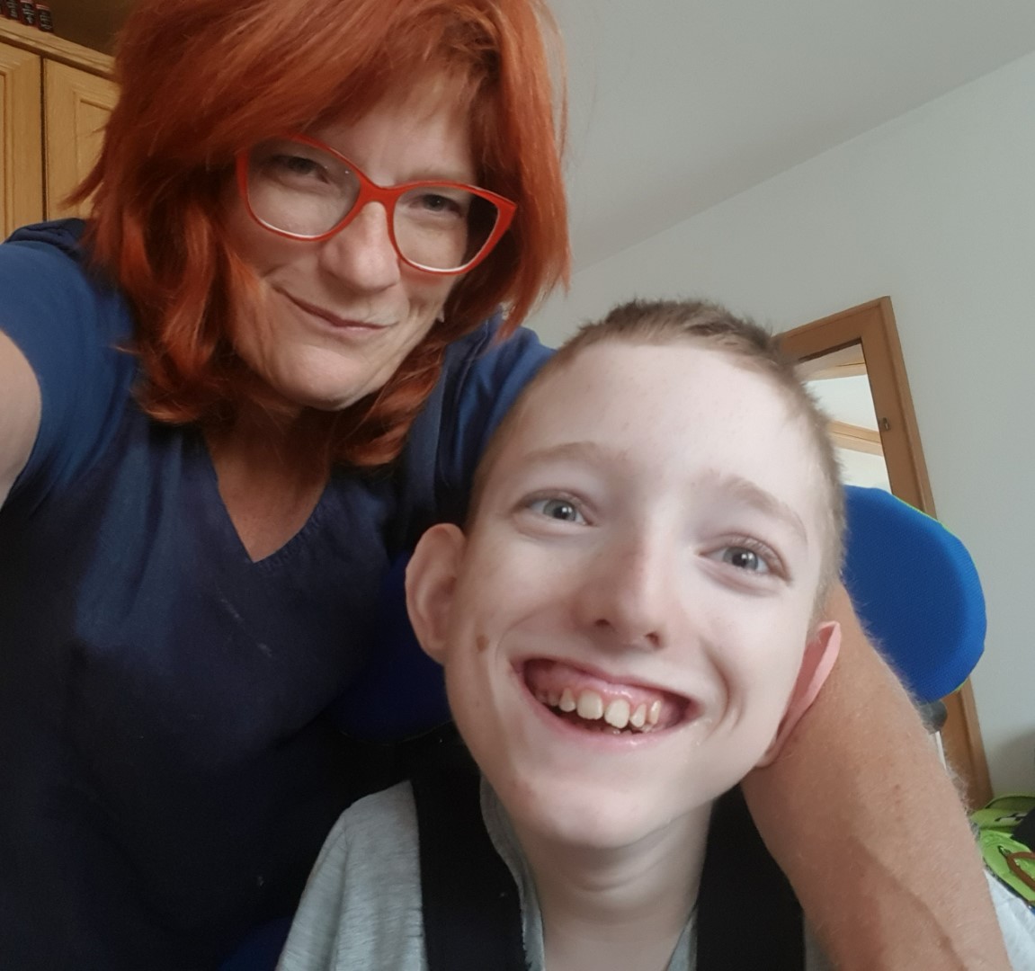 | alt: | Eine Frau mit roten Haaren lächelt gemeinsam mit einem Jugendlichen in die Kamera – familiäre Begleitung und unterstützende Beratung im Alltag. |