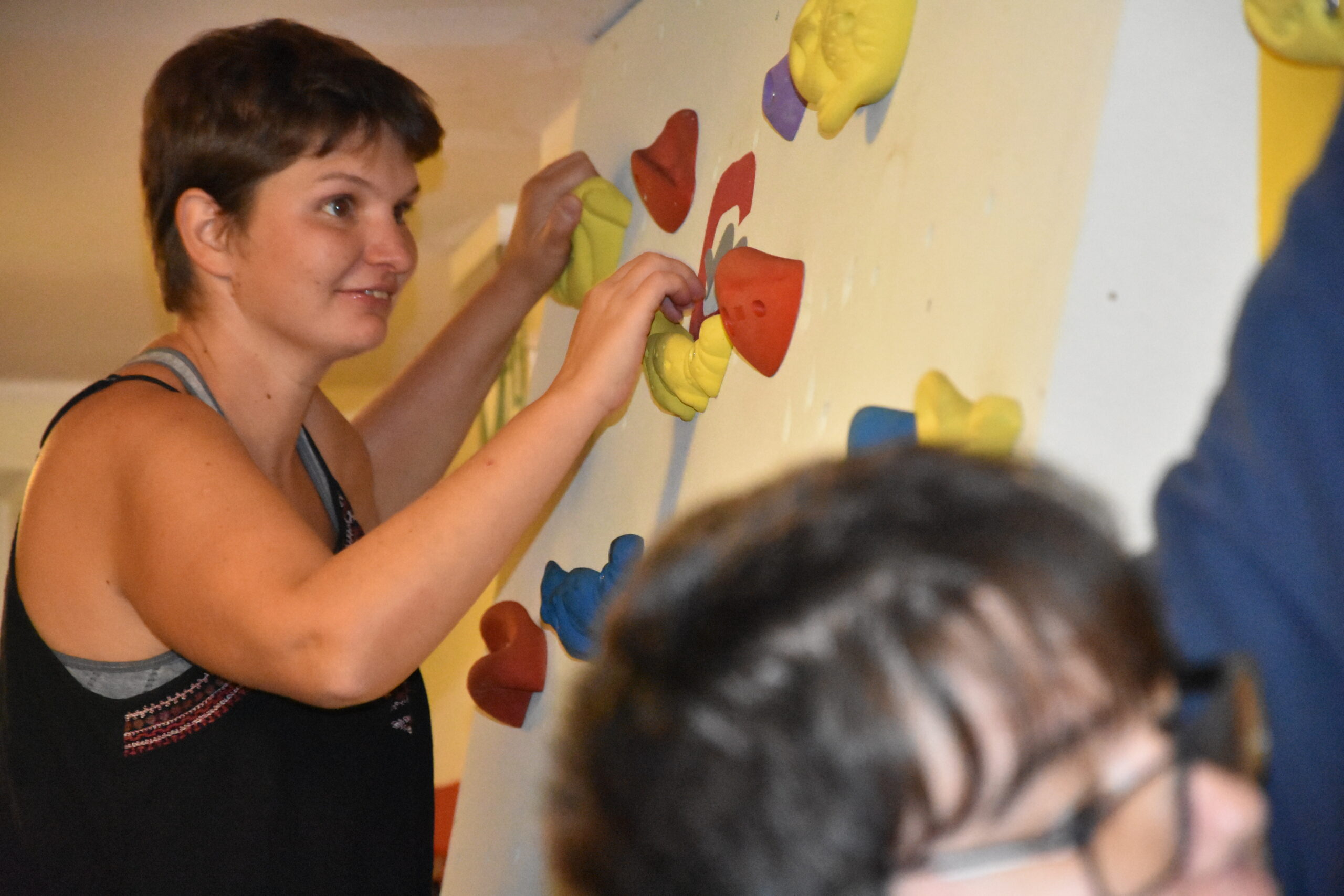 | alt: | Stilisiertes Symbol mit zwei erhobenen Armen, die gemeinsam ein Element tragen – steht für gemeinsames Tun, Aktivität und das Entwickeln individueller Fähigkeiten. |