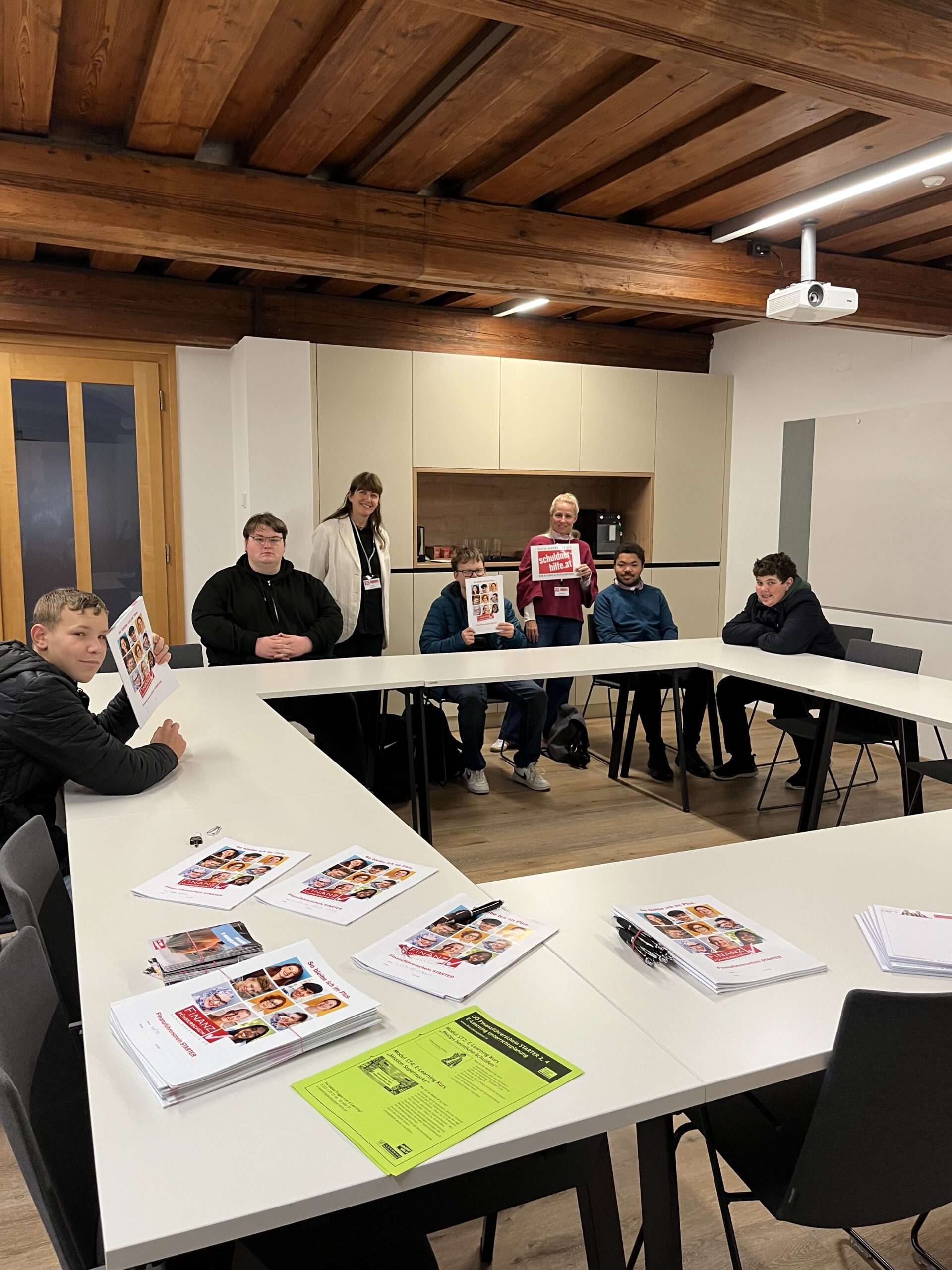 | alt: | Einige junge Erwachsene sitzen gemeinsam am Tisch und lachen miteinander – alltagsnahe Gemeinschaft und Vorbereitung auf selbstständiges Leben. |