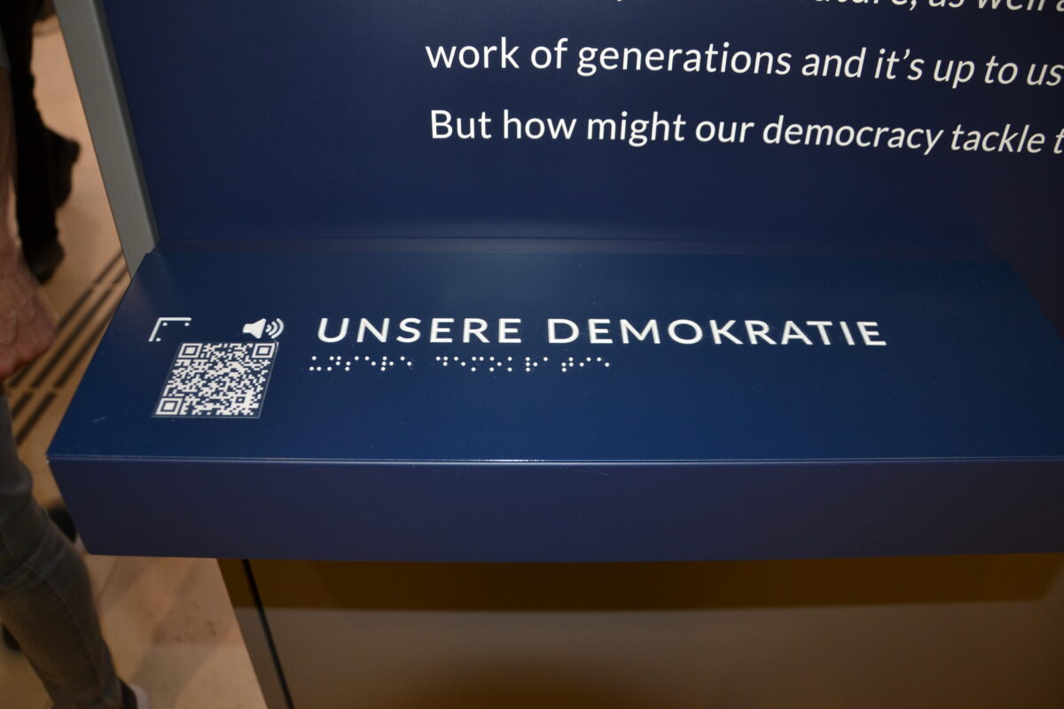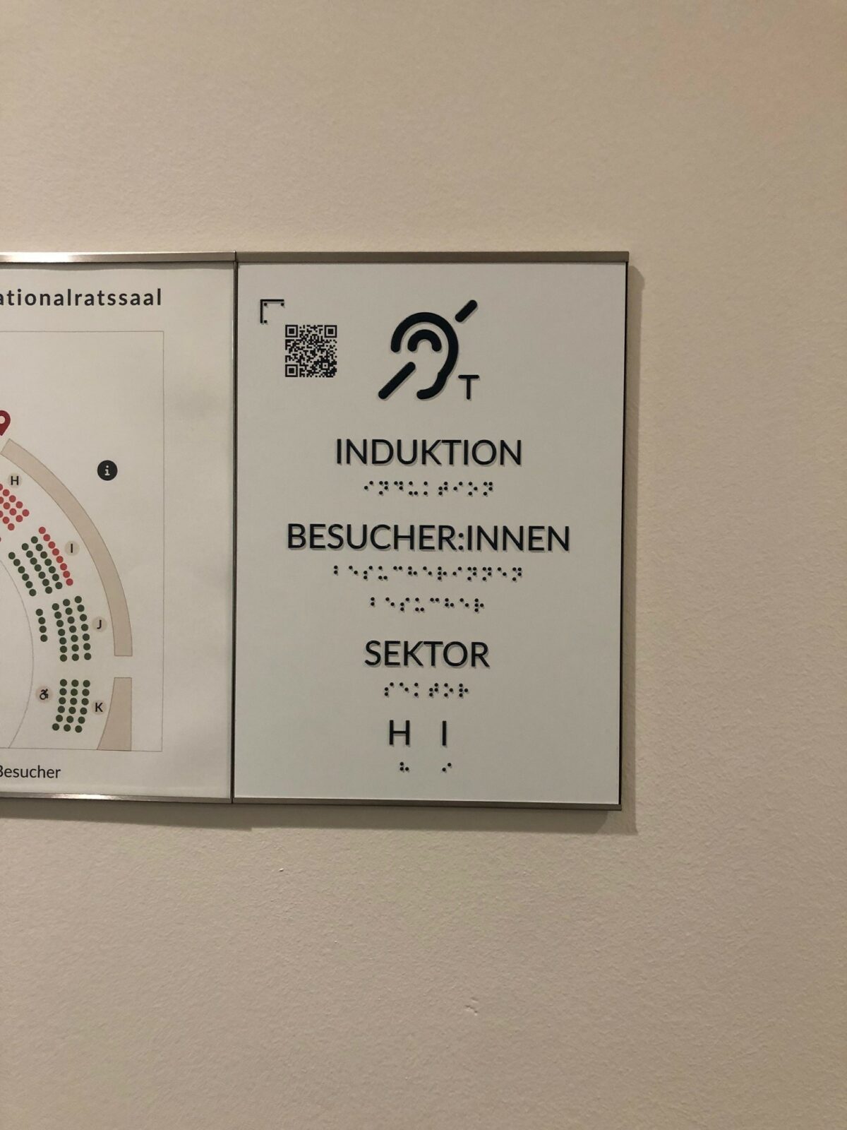 "Alle Bereiche des Parlamentsgebäudes sind barrierefrei erreichbar. Sie sind herzlich willkommen, unabhängig davon, ob Sie akustische oder visuelle Informationen benötigen, ob Sie einen Assistenzhund mit sich führen, im Rollstuhl oder mit einer Gehhilfe unterwegs sind. Auch das Demokratikum – Erlebnis Parlament mit seinen interaktiven Stationen - können Sie mit Hilfe technischer Unterstützung erkunden. Der Ausstellungsbereich verfügt über eine taktile Orientierungsstation und eine induktive Höranlage beim Infopoint. Unsere Mitarbeiter:innen sind speziell im Umgang mit Menschen mit Behinderung geschult und helfen gerne!" So der Hinweis auf der Website des Parlaments, die übrigens auch in Einfacher und Leichter Sprache abrufbar ist.