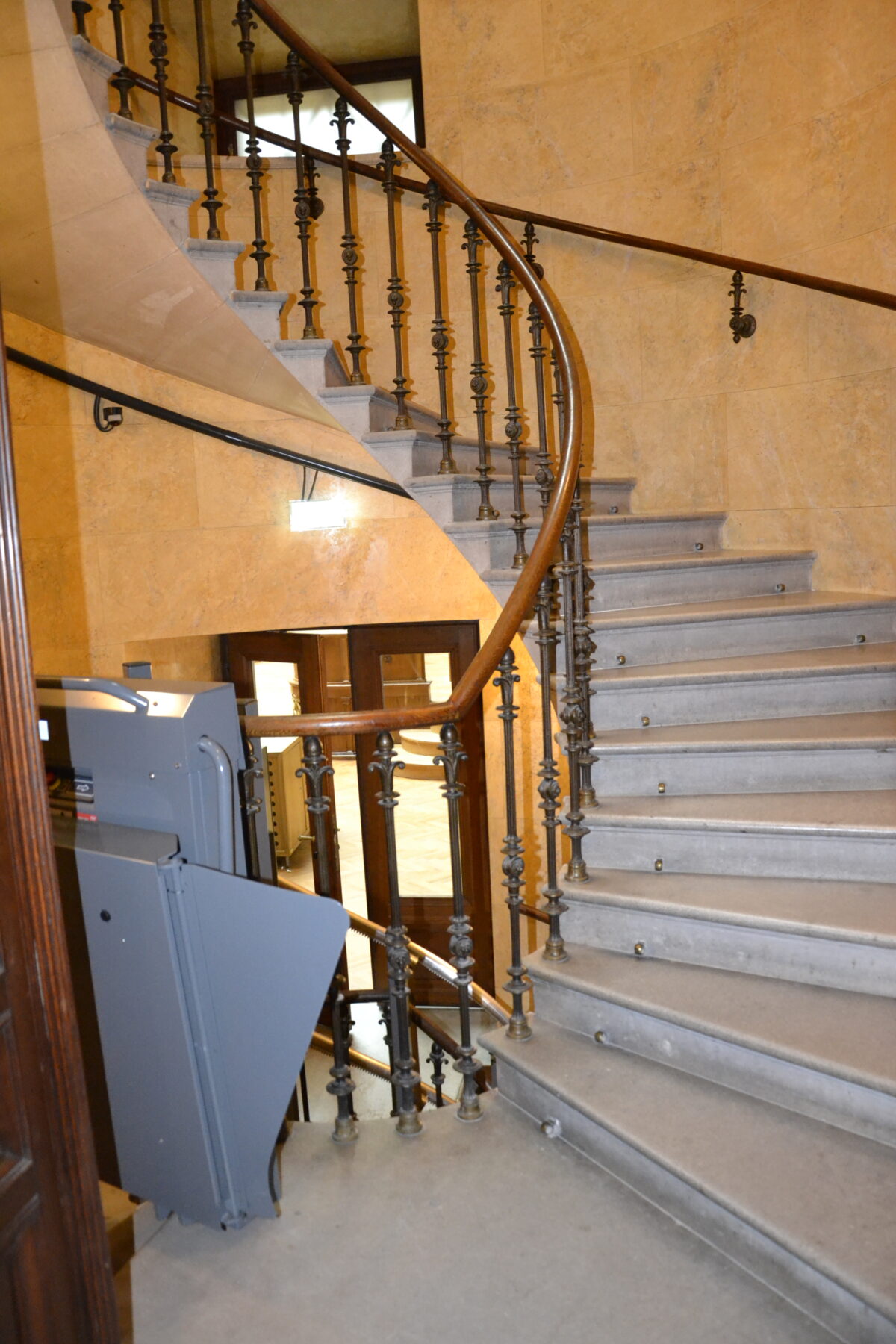 Ein historisches, denkmalgeschütztes Gebäude auf den neuesten technischen Stand zu bringen und möglichst umfassend den Ansprüchen an Barrierefreiheit gerecht zu werden, war kein einfaches Unterfangen, wie uns im Rahmen einer Führung versichert wurde. Dass dieser Spagat dennoch gut geglückt ist, veranschaulichen die Bildimpressionen weiter untenstehend.