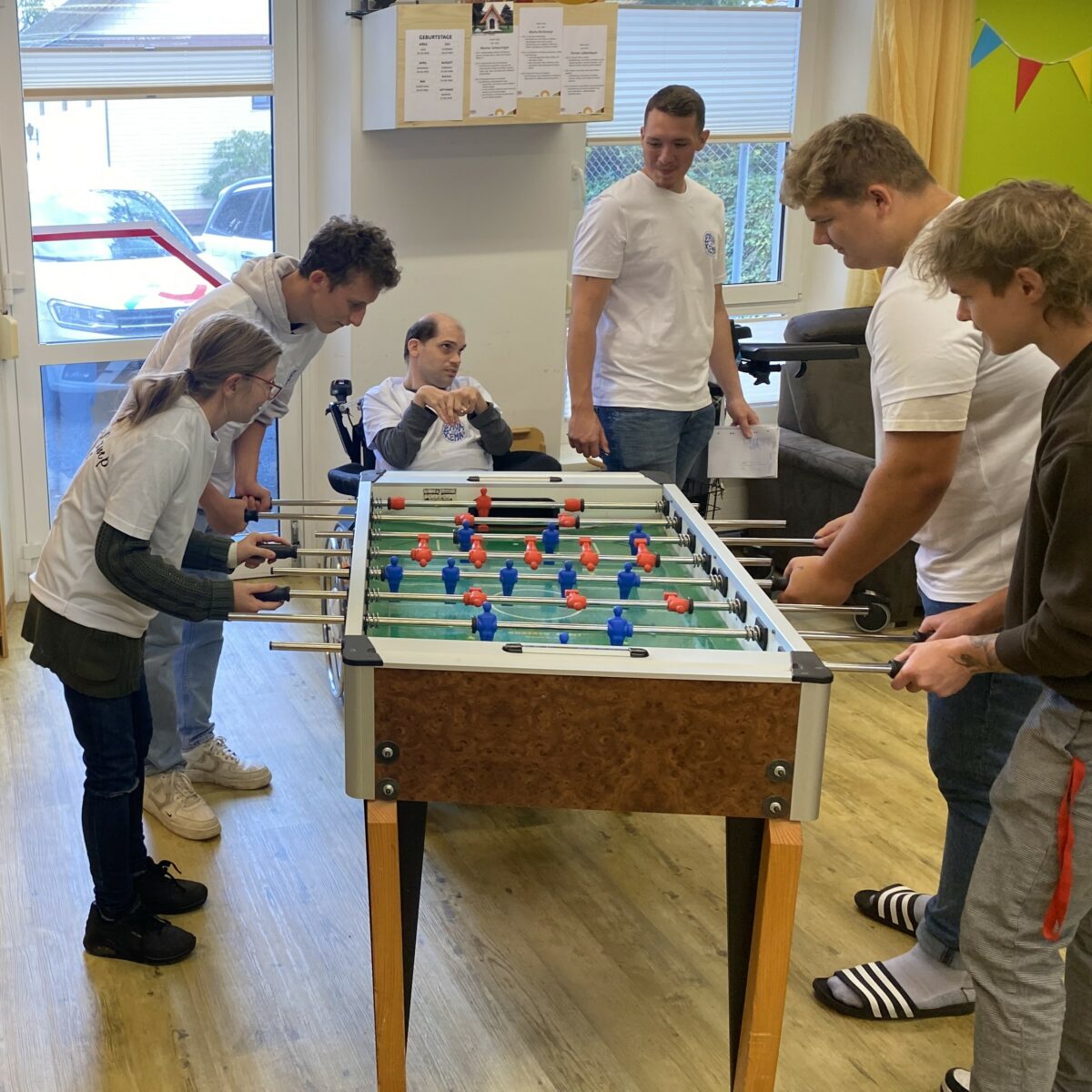 Heuer mussten wir uns neu erfinden, da uns die vorangegangenen Wetterkapriolen ordentlich gefordert haben. Also haben wir das Sportcamp kurzerhand ins Feichtlgut verlegt und das Sportprogramm entsprechend der indoor-Gegebenheiten angepasst. Ganz im Sinne der Fokus Mensch-Mentalität: Wenn es Herausforderungen gibt: Wir finden eine Lösung! Dieses Jahr hatten wir auf unserer Agenda: Mölki, Corne Hole, Bouldern (Klettern), Dart Turnier, und Tischfußball Turnier. Für kreative Köpfe gab es zudem im Speisesaal eine Ecke für handwerkliches Arbeiten, wo tolle Ideen und Kunstwerke, wie etwa selbst gestaltete Ansteck-Buttons, entstanden.