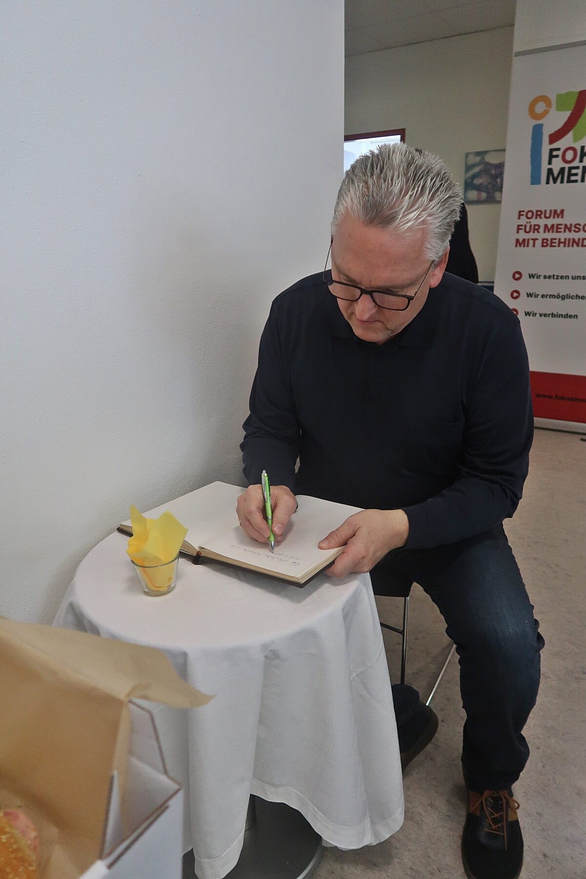 Die Büroräumlichkeiten wurden zu einem stimmigen "Veranstaltungszentrum" umdekoriert. Fotowände zeigten Eindrücke von Highlights aus längst vergangenen und erst kürzlich Tagen, Erinnerungen konnten aufleben. Für viele war es lustig, die alten "Jugendfotos" so mancher Kolleginnen und Kollegen zu sehen... Zur Erinnerung an den schönen Tag hielten viele der Gäste liebe Grüße im "OÖZIV-Fokus Mensch - Stammbuch" fest.