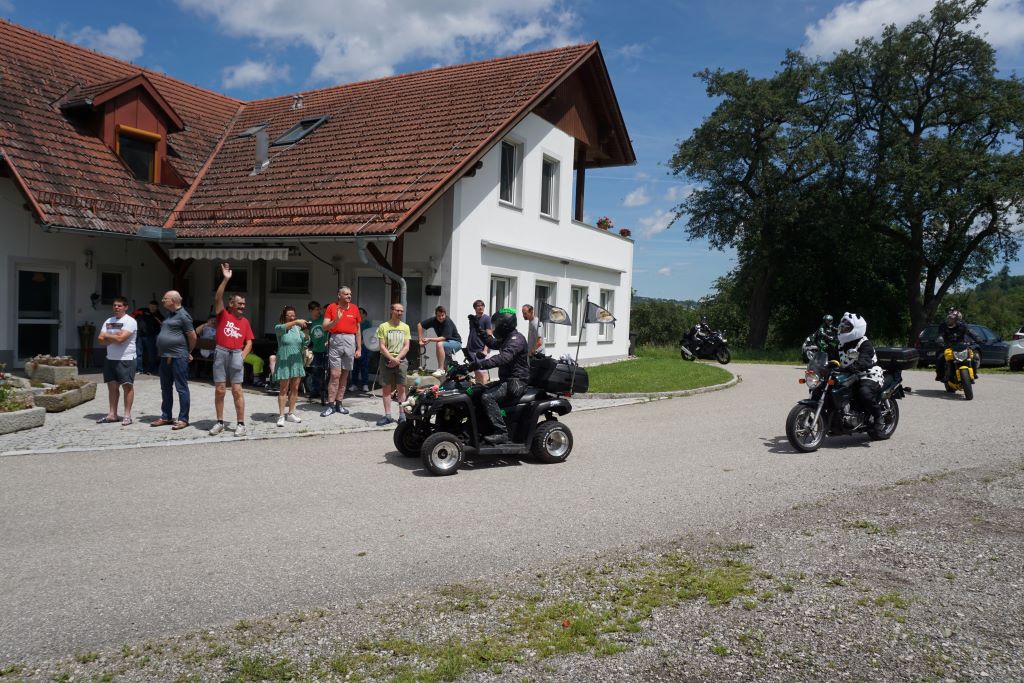 Einmal zur KTM Motohall zu fahren, und dabei womöglich sogar selbst auf einem Motorrad zu sitzen, das war der Herzenswunsch von Johann Muckenhuber, einem Bewohner des Hofs Schlüßlberg. Diesen erfüllten die „Biker, Triker und Quadfahrer mit Herz“ nun im heurigen Sommer.