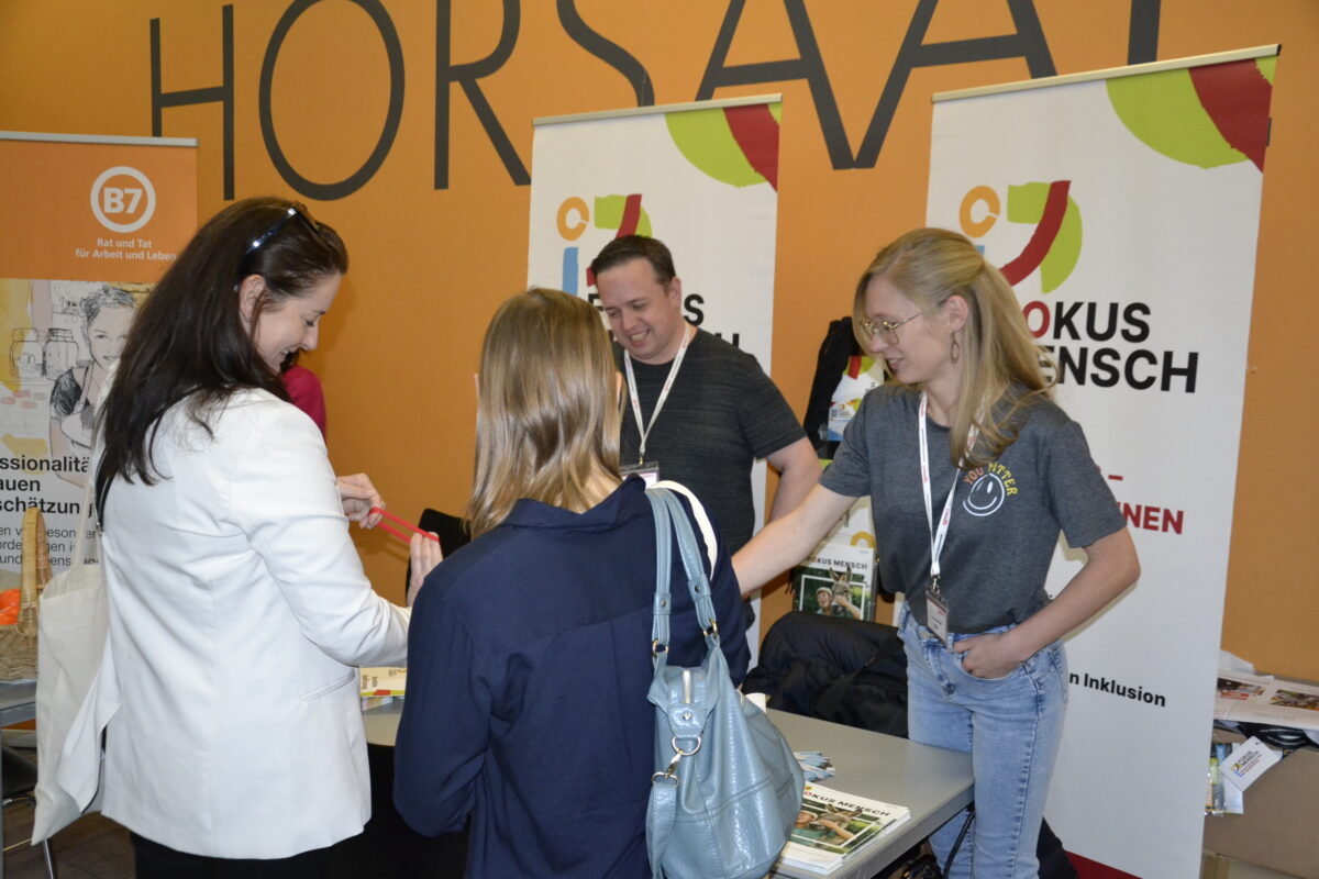 Vielen Dank an alle Beteiligten, die diesen Tag zu einem wirklich gelungenen Messeauftritt gemacht haben. Es ist immer wieder eine Freude mitzuerleben, wie gut die Angebote von Fokus Mensch bei potenziellen neuen Mitarbeiterinnen und Mitarbeitern ankommen - sei es bei Berufsanfängerinnen oder bei Quereinsteigern!