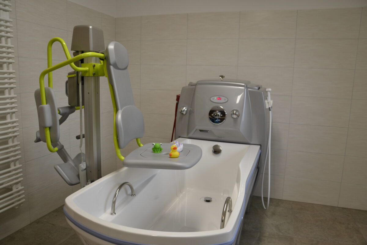 Außerdem hat der Hof Schlüßlberg ein neues Pflegebad-Zimmer errichtet, das dank seinem Ambiente mit so mancher Wellness-Einrichtung mithalten kann: Statt weißer Kacheln findet man hier wohnliches Badezimmer-Flair und einen großzügig gestalteten Raum, in dem sich auch eine Massageliege und ein Zimmerradio befinden. „Die Bewohnerinnen und Bewohner nutzen die neue Badewanne sehr gerne. Sie genießen es, sich im wohlig-warmen Wasser zu entspannen“, so Sonja Stallinger. Dank der vorhandenen modernen Pflegebehelfsmittel wie etwa einem Sitz-Lifter können die Badenden sicher in der Badewanne sitzen bzw. liegen und ohne körperliche Anstrengung der Begleitpersonen in die bzw. aus der Wanne gebracht werden.