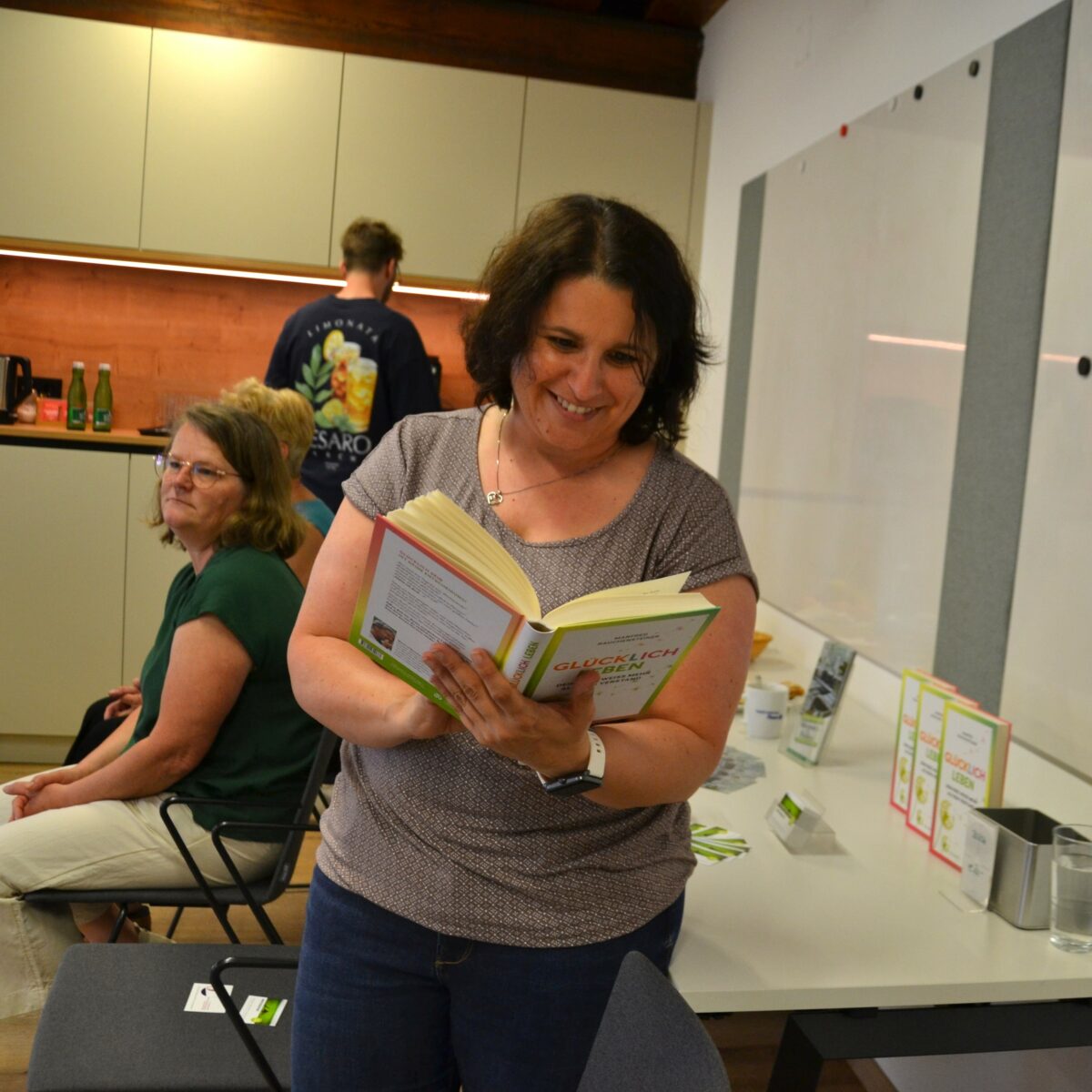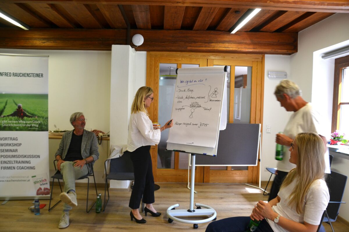 Glücklich zu sein ist unsere eigene Entscheidung, davon sind Angela Huemer und Manfred Rauchensteiner überzeugt. Die beiden leiteten im Rahmen der Betrieblichen Gesundheitsförderung für Fokus Mensch einen Workshop, zu dem alle Mitarbeiterinnen und Mitarbeiter eingeladen waren.