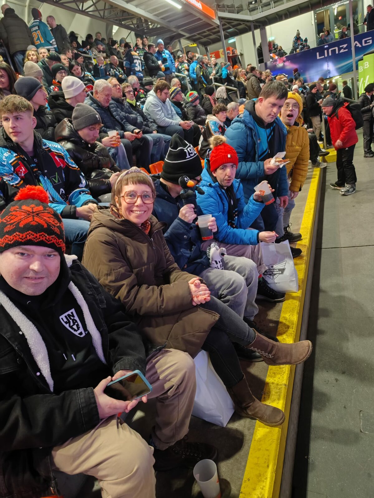Fünf Sportbegeistere aus dem Feichtlgut und ihre Begleitpersonen machten sich auf den Weg nach Linz in die Eisarena, um die Black Wings anzufeuern.