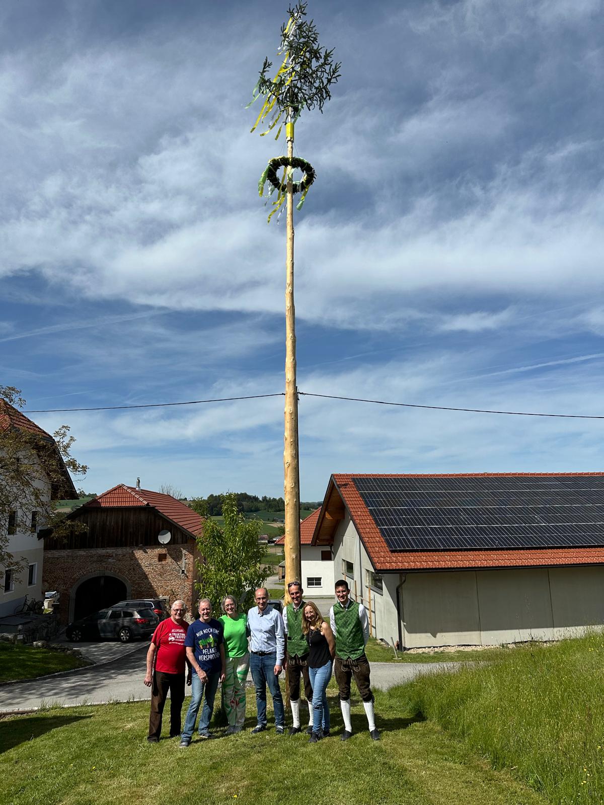 Dieses Jahr gibt es zum ersten Mal einen Maibaum in Oberspaching, Gemeinde Michaelnbach! Der Baum war ein Geburtstagsgeschenk zum 50er von Klaus Mühlböck und wurde von der Fam. Hehenberger aus Stroheim zur Verfügung gestellt.