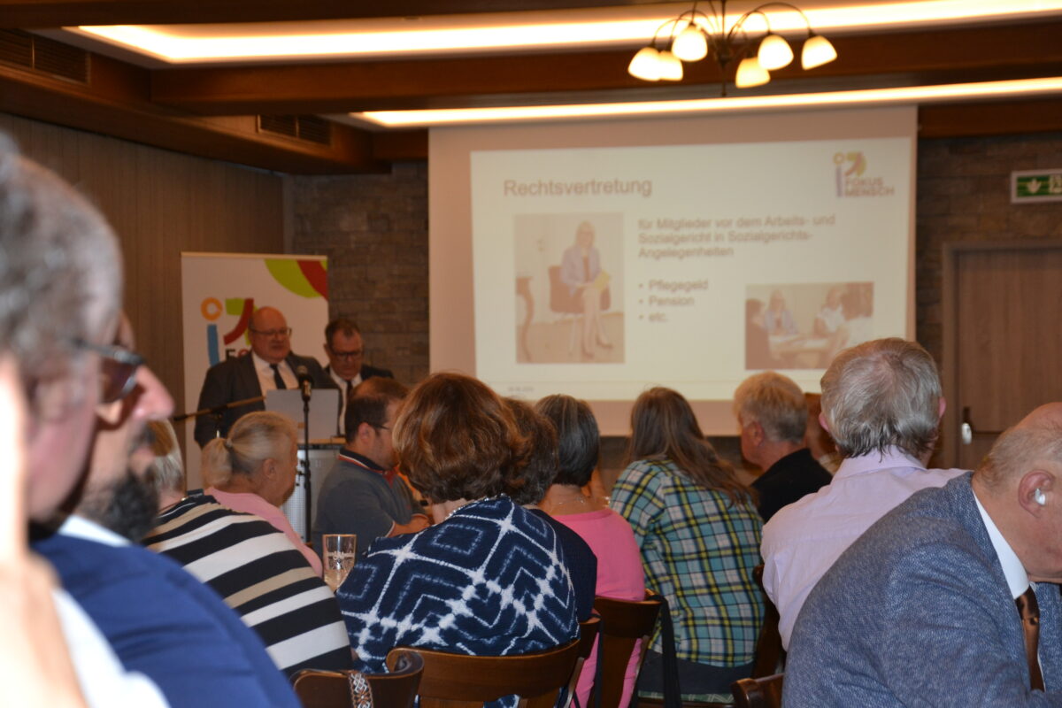 Unserer Wertschätzung verliehen wir bei unserer Generalversammlung im Gasthaus Waldschänke in Wels mit einem stimmigen Festakt und anschließendem gemeinsamen Essen den passenden Rahmen. Zu Beginn gab es einen Überblick über die Angebote und Serviceleistungen von Fokus Mensch: Kostenlose Rechtsvertretung für Mitglieder, Bildungsangebote für Ehrenamtliche, das Projekt „Virtuelles Reisen mit VR-Brille“ und vieles mehr werden geboten. Ein Rückblick auf wesentliche Ereignisse aus den vergangenen zwei Jahren ließ Highlights wie die Fachtagung „Mein Leben – meine Rechte“ für Menschen mit Behinderung, mehrere Jubiläen (75 Jahre Landesverband, 60 Jahre Hof Schlüßlberg, 30 Jahre Hof Tollet, 20 Jahre Feichtlgut), die Radio OÖ Sommertour bei uns zu Gast, den Kooperations-Vortrag „Demenz erkennen“, die Erfolgsbilanz zum Integrativen Café Kallham Revue passieren.