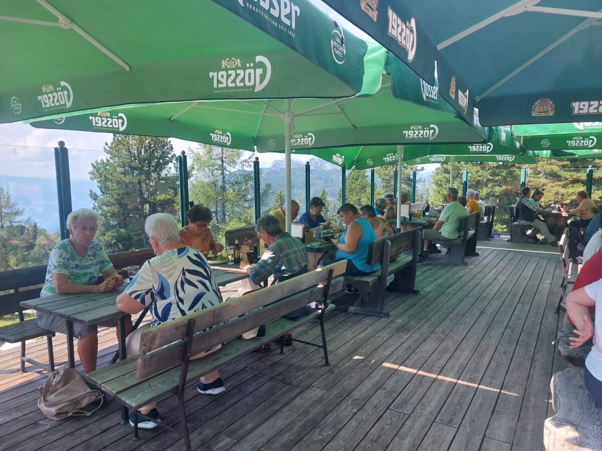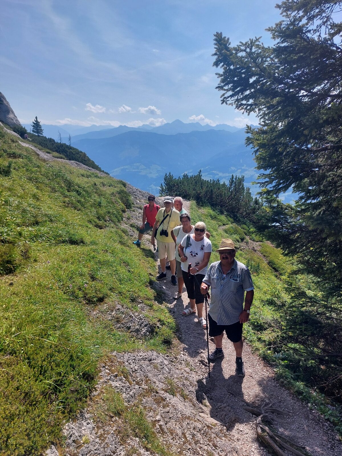 Per Bus über die höchste Alpenstraße Österreichs, hinauf bis zum Steinerhaus „erklommen“ die Ausflügler den Berg bis auf 1845 Höhenmeter. Einige rüstige Mitglieder machten sich noch zu Fuß auf den Weg zum Friedenskircherl, der Rest blieb in der näheren Umgebung und genoss das himmlische Panorama. Nach einem gemeinsamen Mittagessen führte die Rückfahrt über den Gosausee, wo ebenfalls noch Zeit für Geselligkeit war.