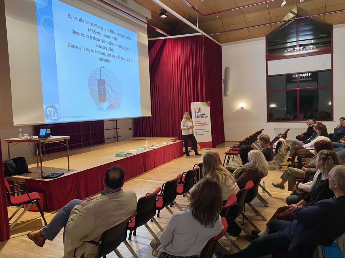 Mehr als 70 Interessierte, darunter auch viele unserer Mitarbeiterinnen und Mitarbeiter, nahmen an der kostenlosen Veranstaltung teil. Expertin Michaela Bichler von der MAS Alzheimerhilfe gestaltete einen interaktiven Vortrag über die Grundlagen der Demenz, Testmethoden und präventive Maßnahmen wie Ernährung und "Gehirnjogging". Außerdem bot sie alltagstaugliche Hinweise für einen würdevollen Umgang für Menschen mit Demenzerkrankung.