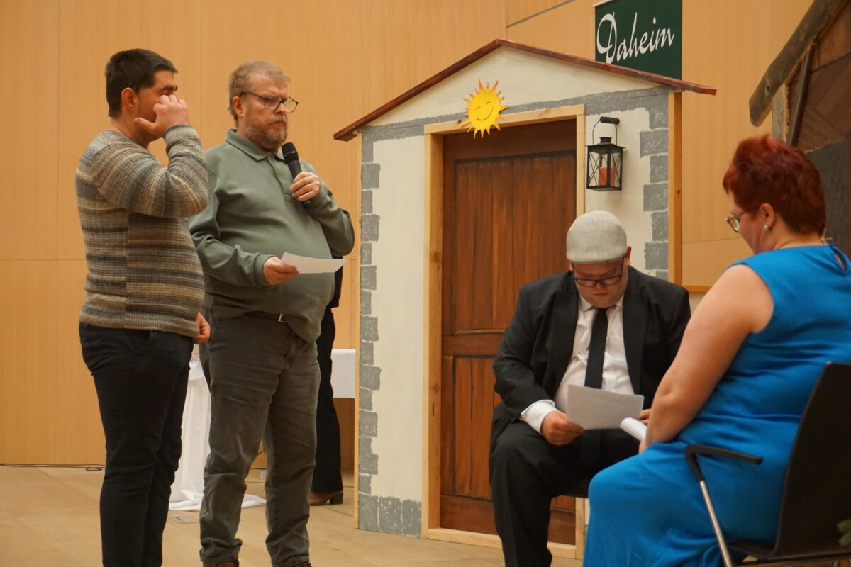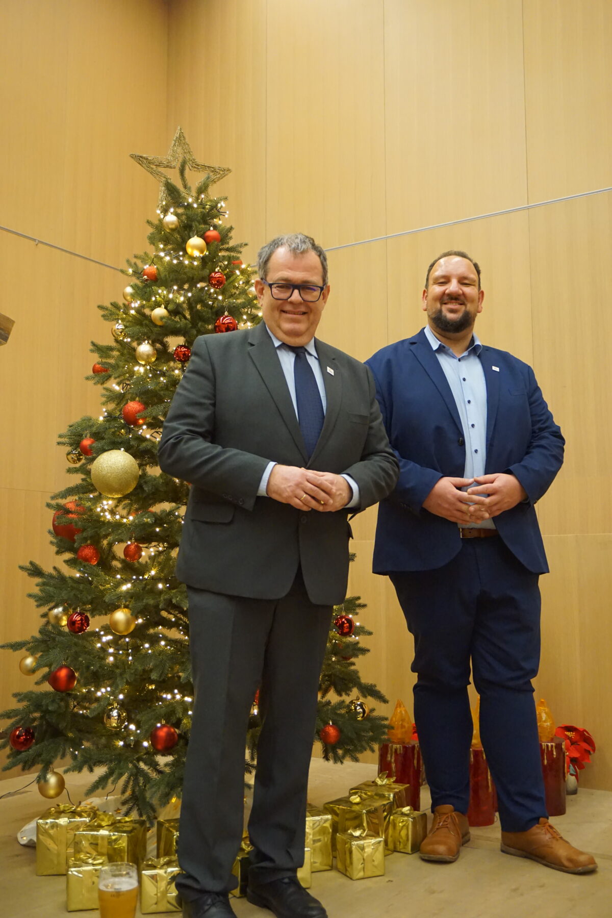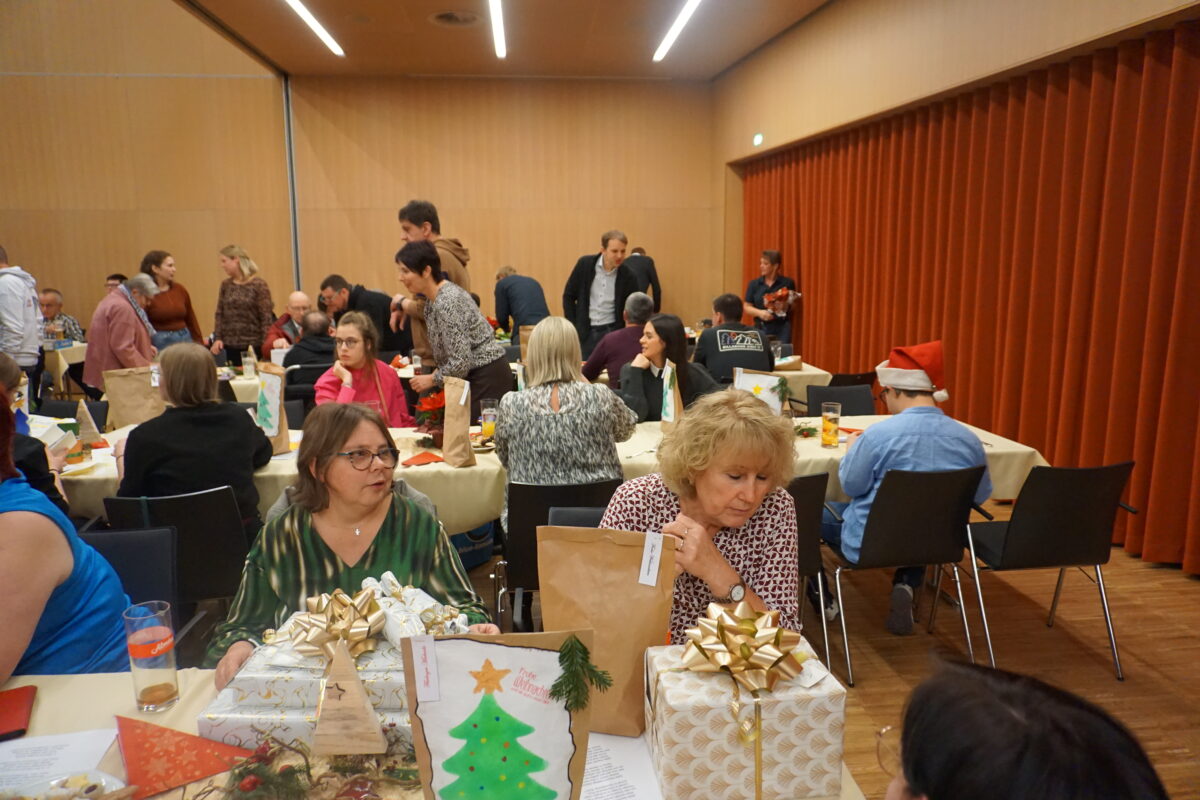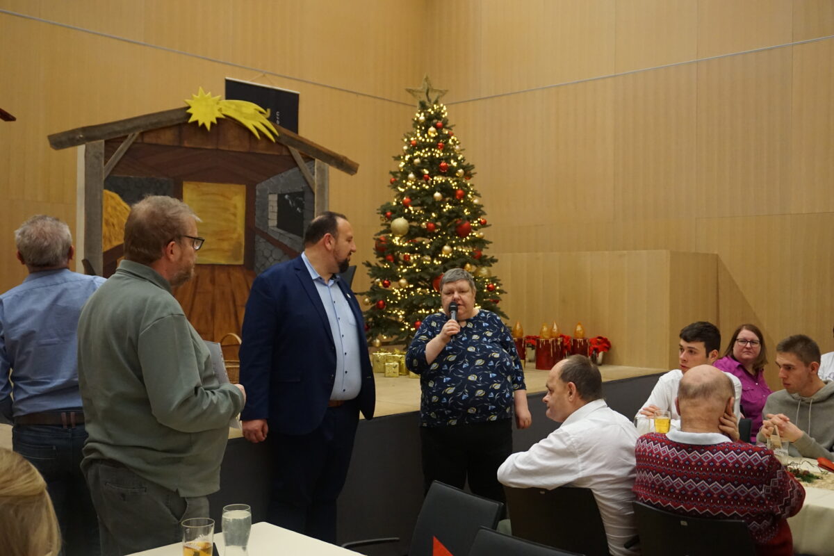 Ein ganz besonderes Fest des Miteinanders feierten Mitarbeiterinnen und Mitarbeiter sowie die am Hof begleiteten Menschen im Veranstaltungshaus akZent in Wallern. Peter Grundner war heuer erstmals Moderator und quasi Gastgeber des Abends. Die liebevolle Dekoration und Vorbereitung des Abends wurden – wie jedes Jahr – von den Teams am Hof selbst gestaltet und verliehen der Feier ihre ganz besondere Atmosphäre. Ehrengast Michael Leitner würdigte in seiner Rolle als Geschäftsführer nicht nur die Leistungen der Mitarbeiterinnen und Mitarbeiter, sondern freute sich als Mensch auch ehrlich über die große Bedeutung des Hofs Schlüßlberg als Ort der gelebten Menschlichkeit und Inklusion in der Region und darüber hinaus. Betriebsratsvorsitzender Johannes Pointner hob die Loyalität der Kolleginnen und Kollegen hervor und richtete den Blick auf die gemeinsame Verantwortung innerhalb der Gesamtorganisation Fokus Mensch. Tina Pühringer, Sprecherin der Interessensvertretung für Menschen mit Behinderung am Hof Schlüßlberg, hielt ebenfalls vor den versammelten Gästen eine wertschätzende Ansprache. In seiner persönlichen Weihnachtsrede sprach Peter Grundner über das herausfordernde und zugleich verbindende Jahr, welches die Belegschaft des Hofs gemeinsam grandios gemeistert hat.